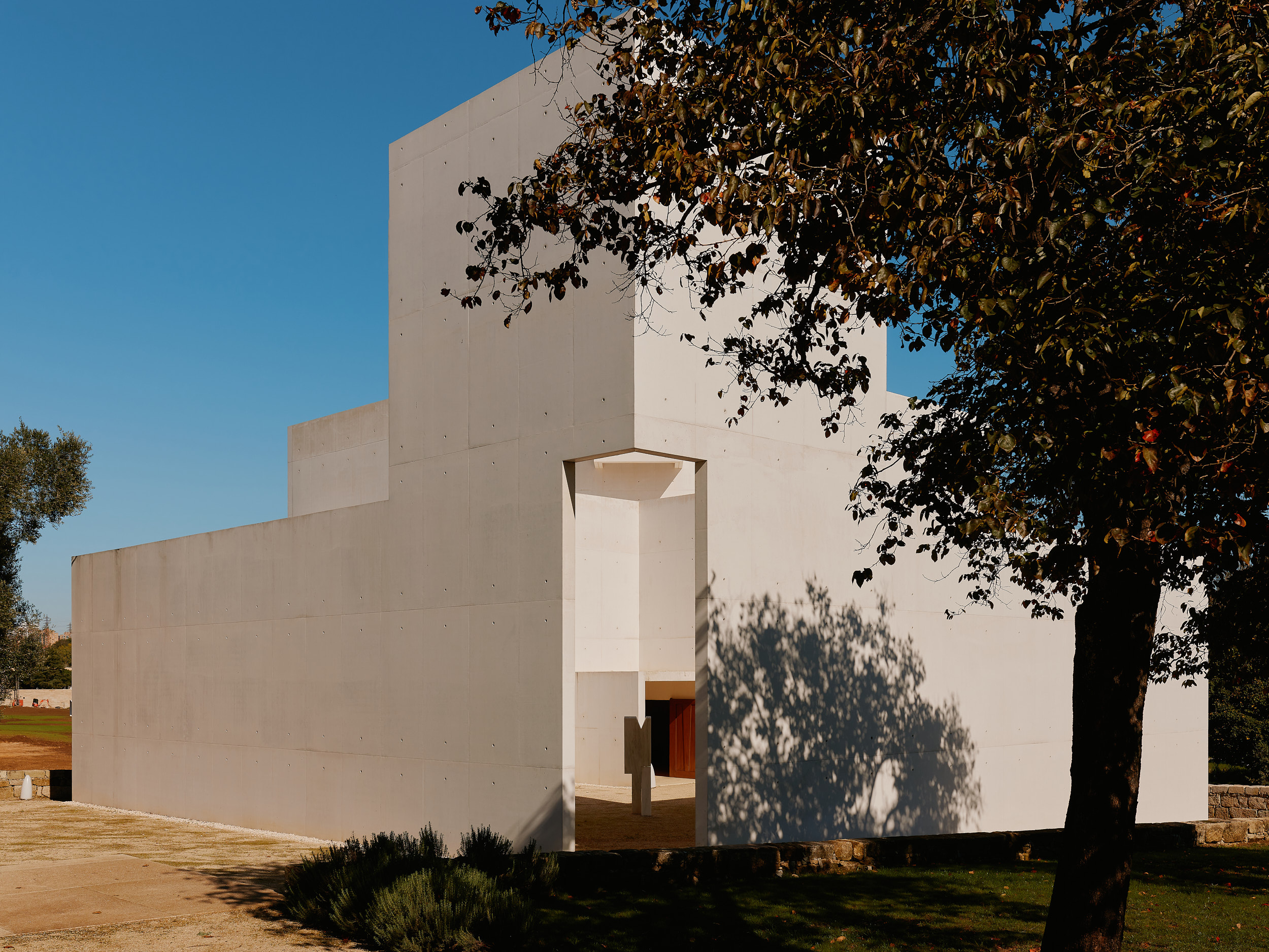 Das Projekt zeigt die Erweiterung des Monastery of Leça do Balio bei Porto. Der Neubau wurde von Álvaro Siza Vieira für die Foundation Livraria Lello entworfen. Das Gebäude besteht aus weißem Beton und fügt sich ruhig in das historische Ensemble ein. Zwei turmartige Volumen umschließen einen offenen Innenhof aus stabilisiertem Kies. Licht, Schatten und Material treten in einen stillen Dialog. Die Architektur wirkt reduziert, präzise und zeitlos. Sie respektiert die Geschichte und schafft zugleich einen neuen Raum für Gegenwart.