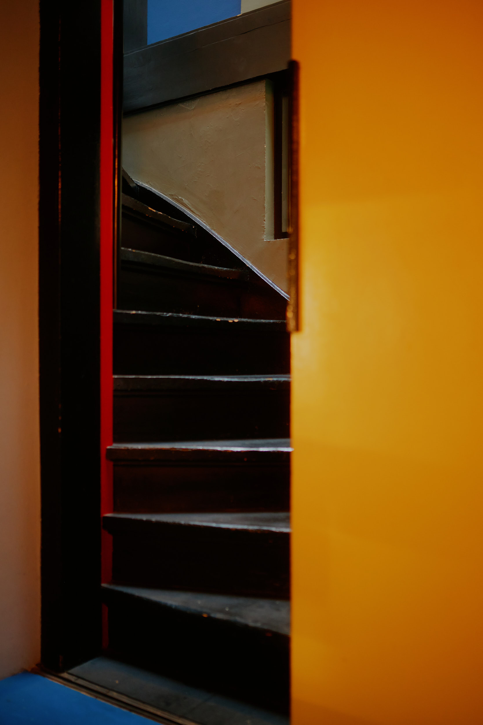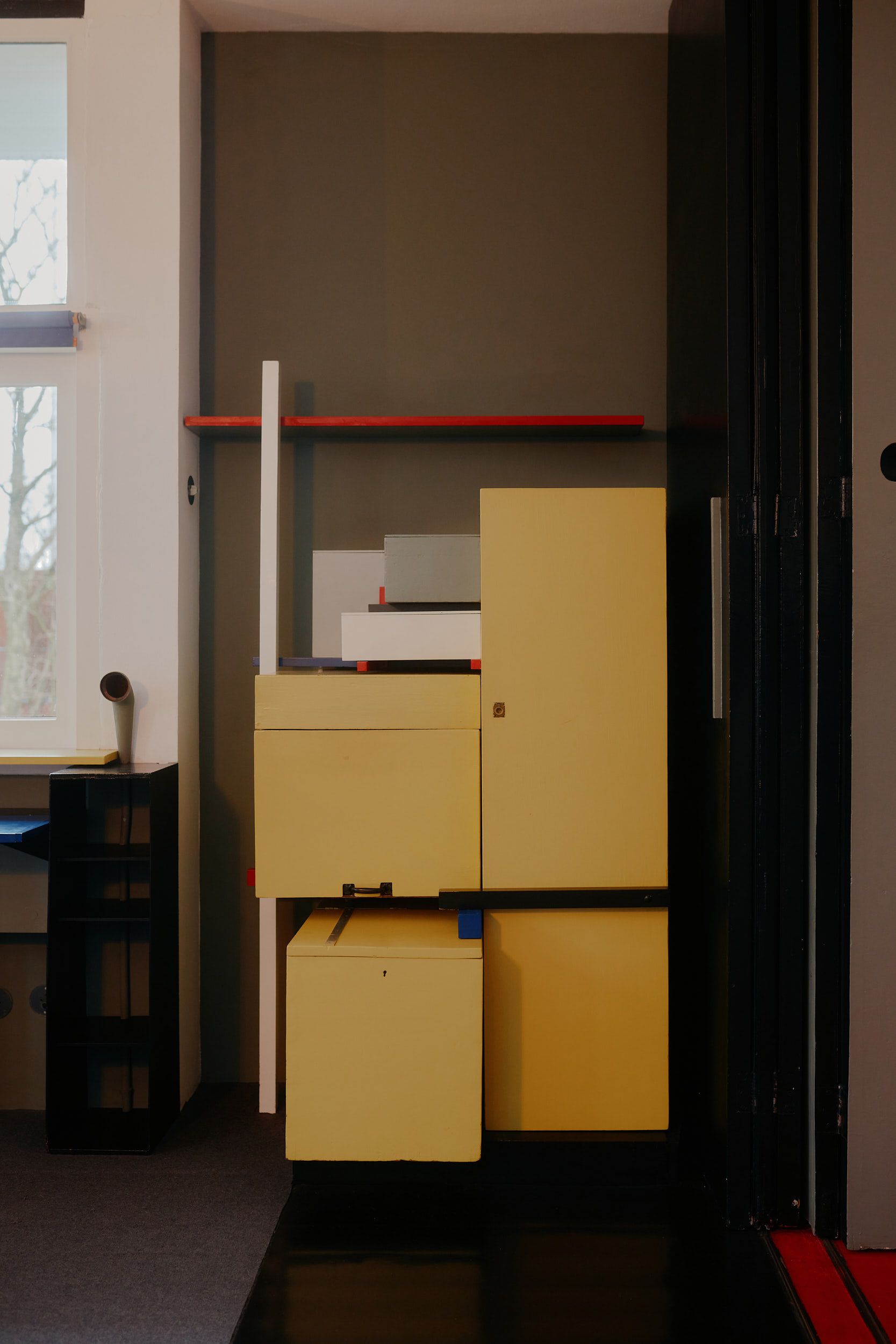 Die Fotografien von David Altrath erfassen die ikonische minimalistische Architektur des 1924 von Gerrit Rietveld entworfenen Hauses. Charakteristisch für dieses UNESCO-Weltkulturerbe sind die klare Formensprache, die Primärfarben Rot, Blau und Gelb sowie flexible Raumstrukturen durch verschiebbare Wände – ein radikales Konzept seiner Zeit.